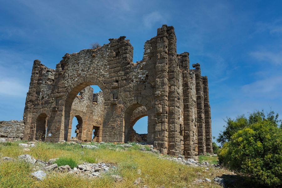 Aspendos se také honosí pozoruhodným akvaduktem , který přiváděl vodu do města ze vzdálenosti až 30 kilometrů, a četnými rozvalinami.